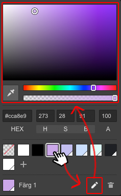 För att ändra färgtemat, klicka på färgen du vill redigera här under, tryck på Färgen under "Backgrounds" (Visat här under) och tryck på den lilla pennan längst ner till höger. Du kan sen ändra färgen hur du vill, tryck på "Save" när du är klar.